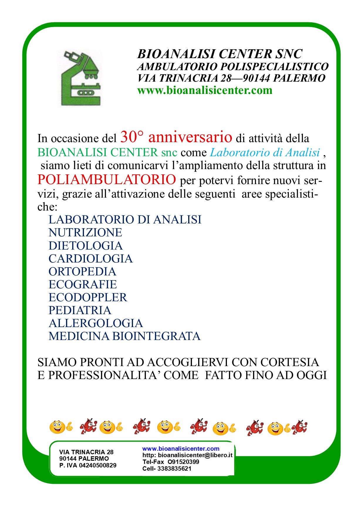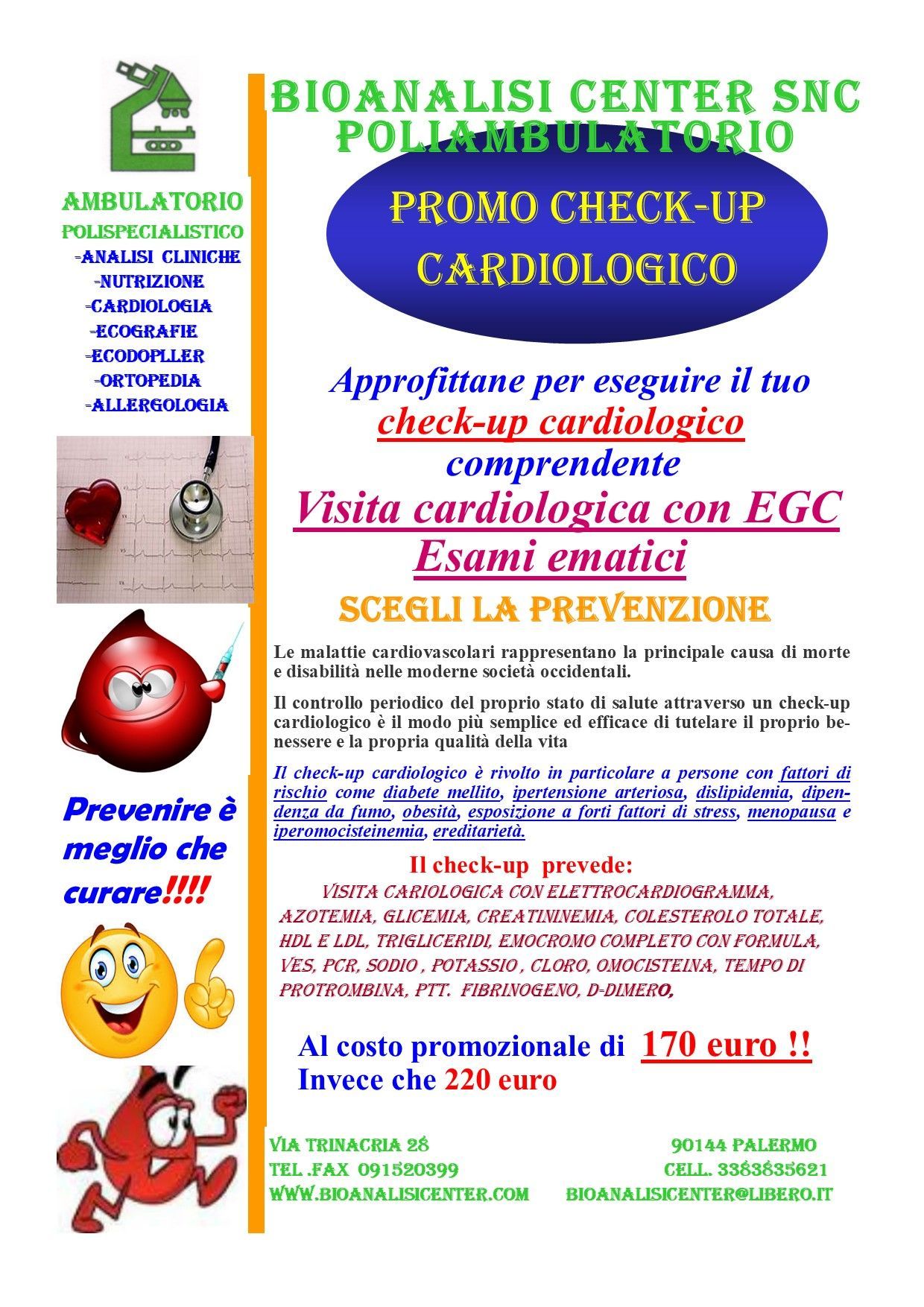 La salute è a portata di tutti a Palermo! Bioanalisi Center ti offre sconti per check-up medici a cadenza mensile. Approfittando delle promozioni potrai usufruire del servizio efficiente del laboratorio diagnostico, contraddistinto da tempestività nella consegna del referto e una vasta gamma completa analisi e test a disposizione per verificare il tuo stato di salute, dal breath test per la valutazione dell'intolleranza al lattosio agli esami specifici per identificare e curare l'ipertiroidismo.